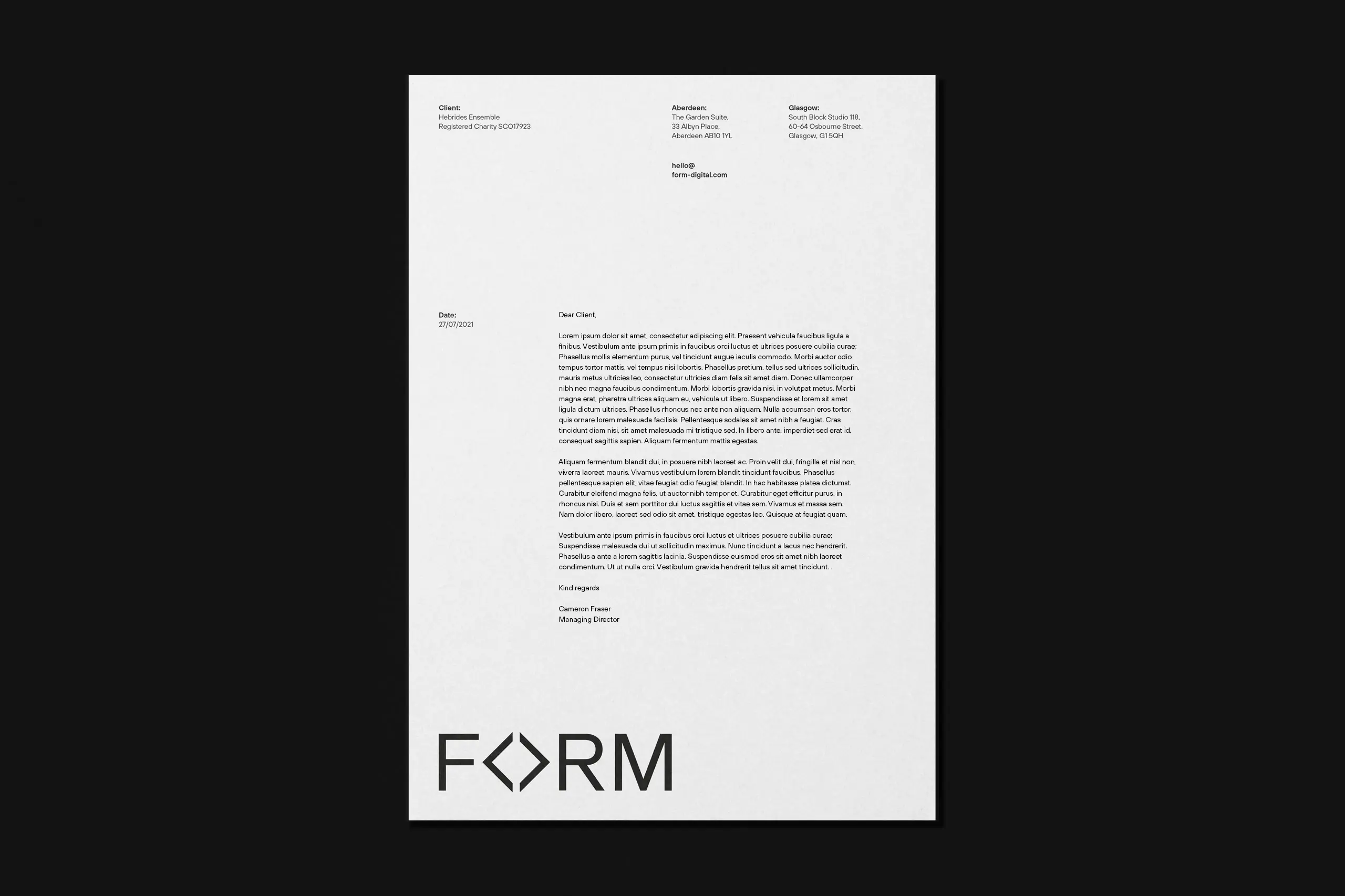 Celebrating our 8th year in business we decided to take the opportunity to refresh the Form visual identity (VI). Originally created for our inception back in 2014, the brand has seen little to no changes and we felt now was the time to look to refine what we have.
