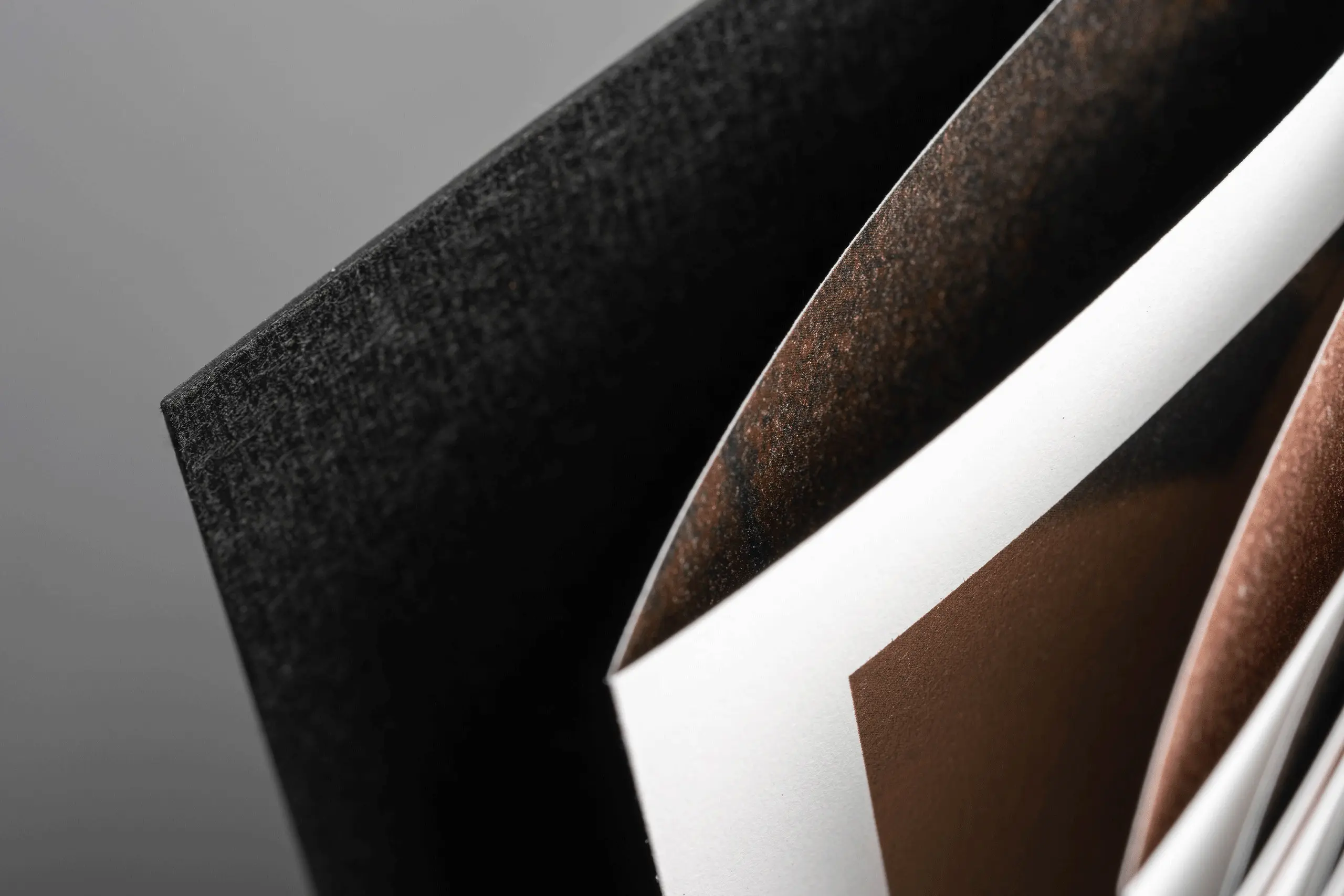 Sliding the copper-foiled book from its sleeve reveals the rich central line, protected and lined with a soft touch internal paper. All of these considered sensorial elements accumulate to deliver an experience of luxury, evoking intrigue and anticipation.