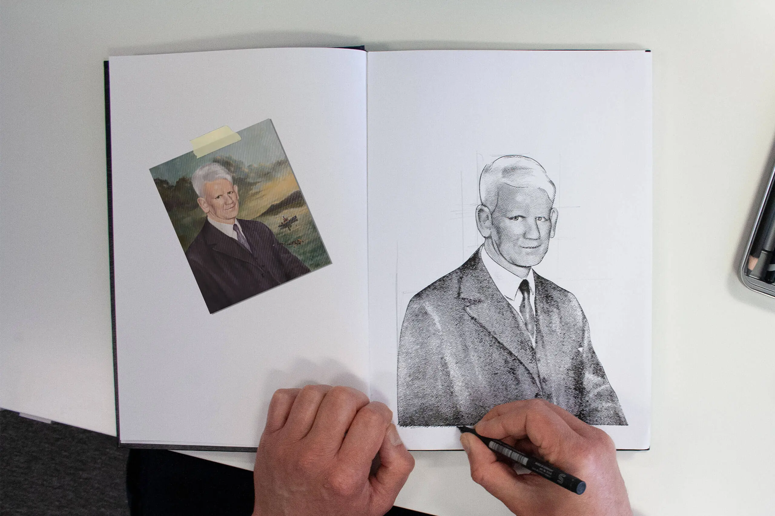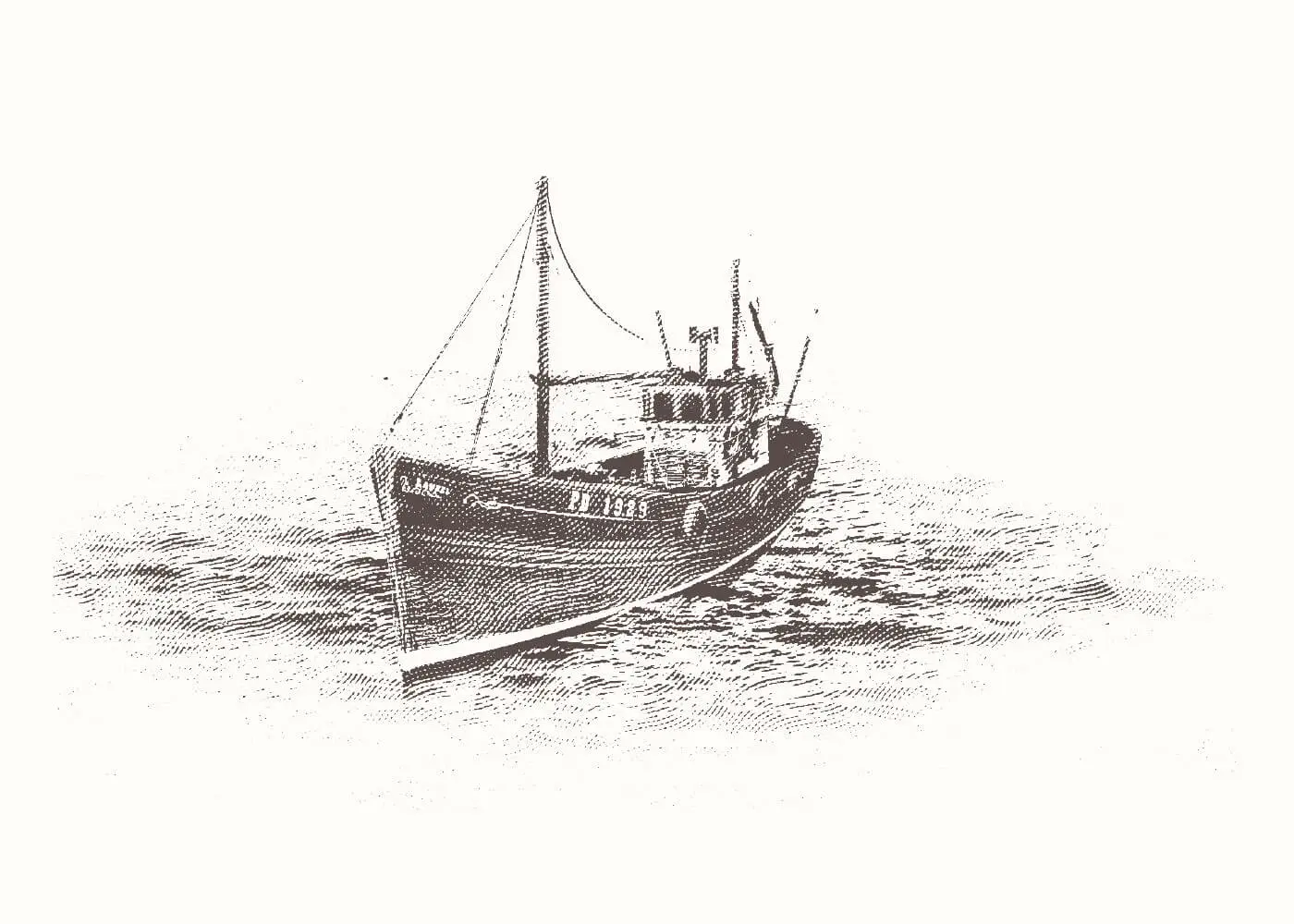 To reinforce the heritage element of the brand, we worked with local North East artist Terry Cook to create a series of custom illustrations for use in brand elements that would help communicate the company’s rich history. Three key images were chosen to epitomise this legacy; a fishing boat, a nod to both the geography and original product line, a teasel, a traditional tool to represent the sustainable techniques still used there, and finally Peter Harley, a portrait of the original founder. We chose etch illustration to mimic the style popularly used at the time of the company’s genesis. The ragged illustrations accompanying the striking clean typography creates a pleasing visual contrast with deeper meaning