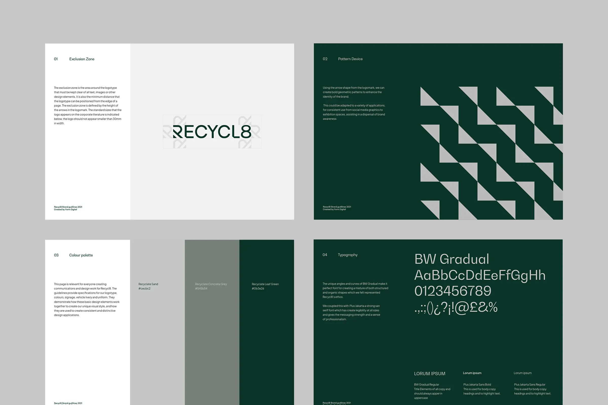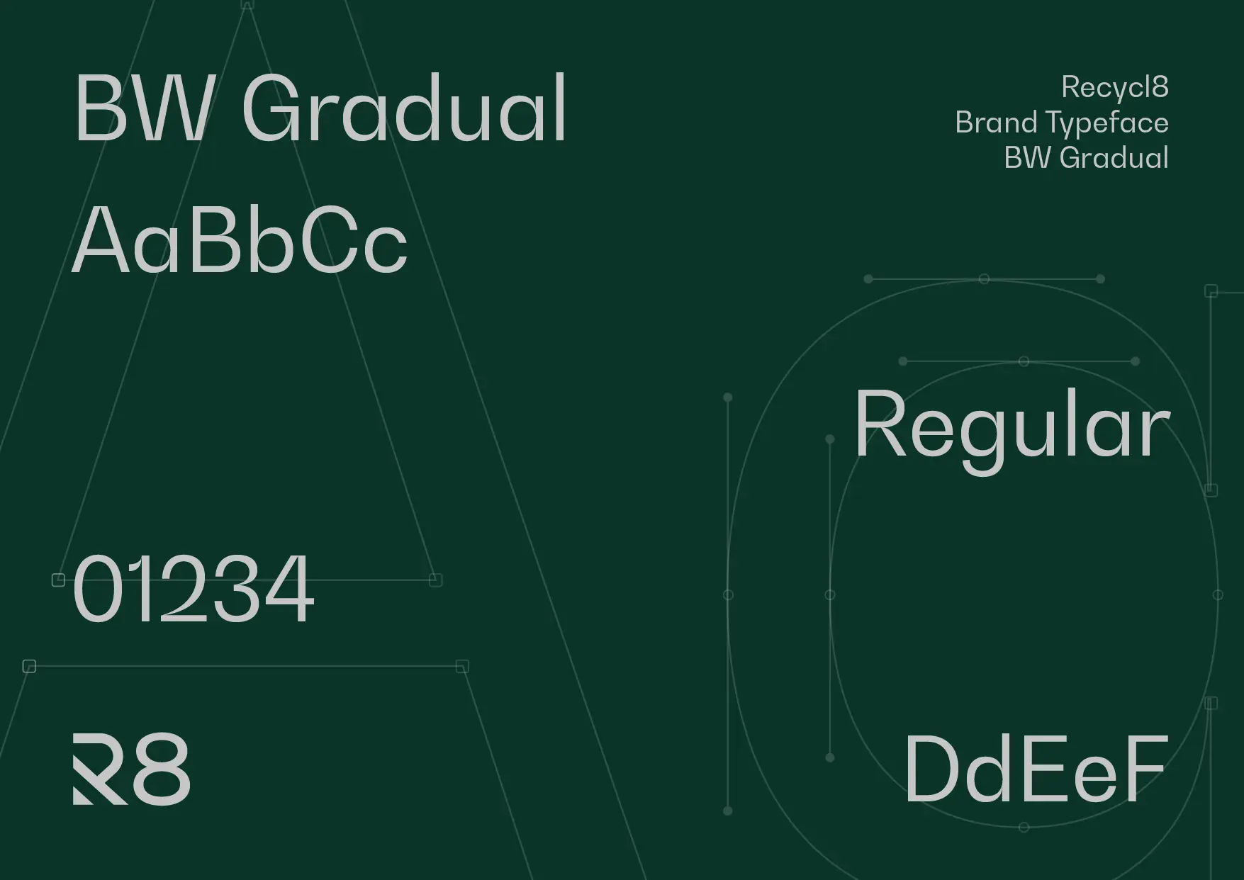 Due to the nature of the work, Recycl8 can’t rely on photography to achieve this, so our solution was to create a type-driven visual style with a modern edge. We explored typeface options to establish how we could powerfully reflect their ethos in text on marketing materials, and decided on BW gradual which blends a structural engineering feel with subtle organic curves in natural contrast. This balanced a symbolisation of both the innovation of the product, with the natural world they are striving to preserve.